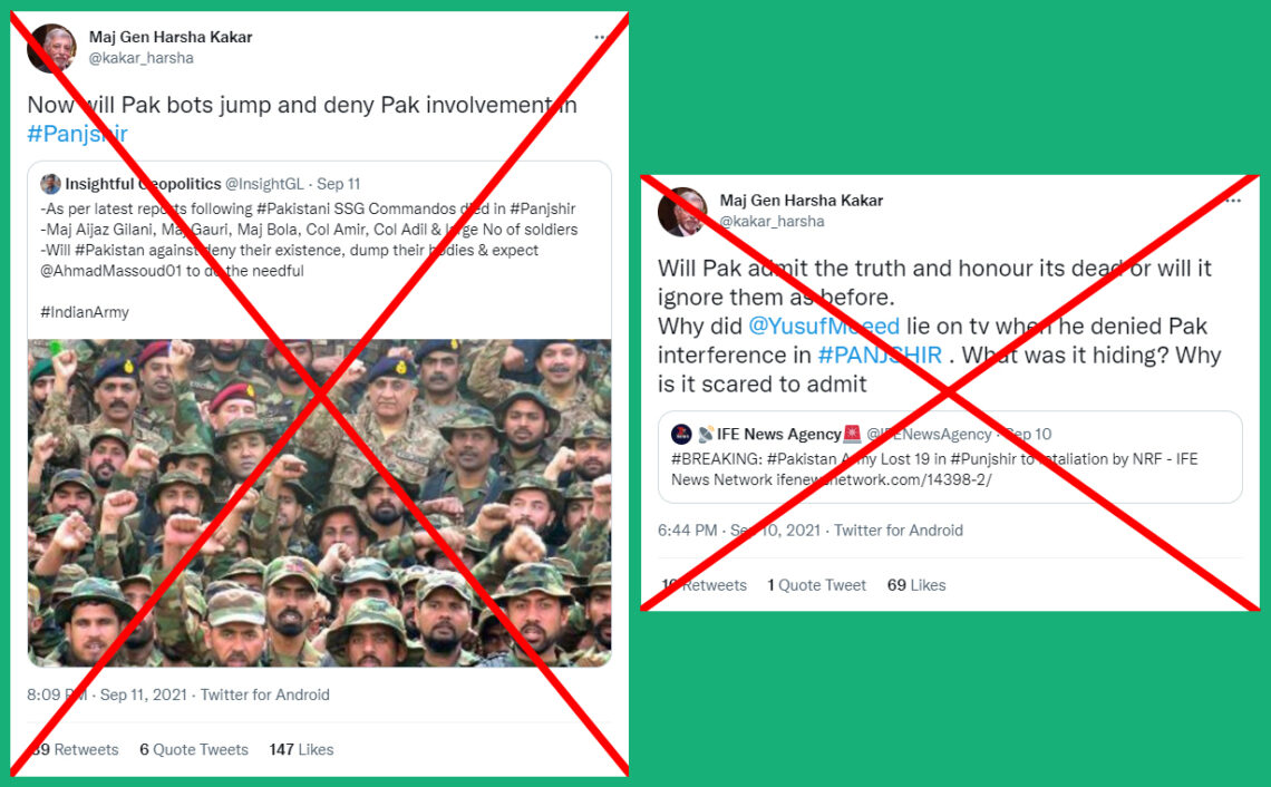 The first one to share the so-called “updates” was Major General (r) Bakshi, who claimed in a tweet on 10 September that Pakistan Army’s Special Service Group (SSG) had “suffered very heavy casualties in Panjshir” and that hospitals in Peshawar, Swat, and Quetta were “overflowing” as a result of the casualties. The ex-Indian Army officer additionally asserted, “Maj Gen Adil Rehmani has come back to organise discreet funerals in dead of Night”.