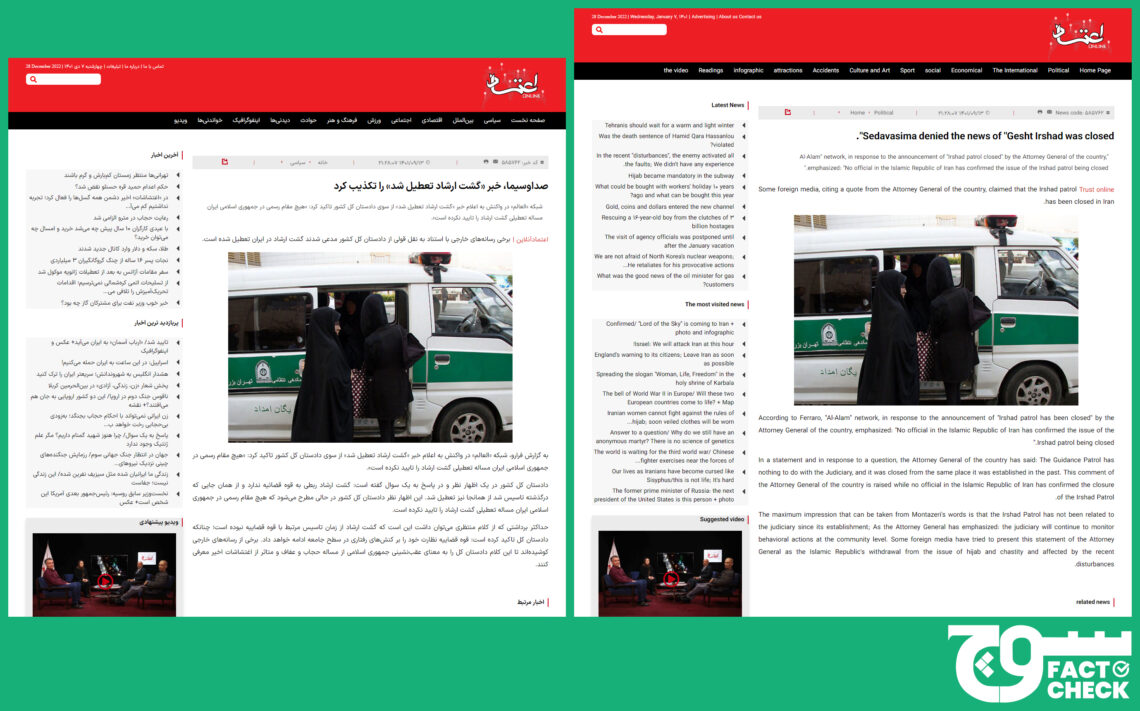 It quoted the Iranian state-owned Alalam News Network, which comes under the Seda va Sima, as saying, “No official in the Islamic Republic of Iran has confirmed the issue of the Ershad patrol [Guidance Patrol] being closed.”