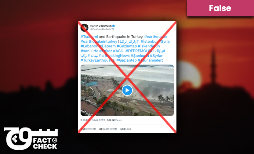 The same day, Indian journalist Harish Deshmukh tweeted a video claiming to show a tsunami in Turkey, which was hit by a massive earthquake in the early hours of the morning, killing over 1,000 people and leaving hundreds of buildings flattened.