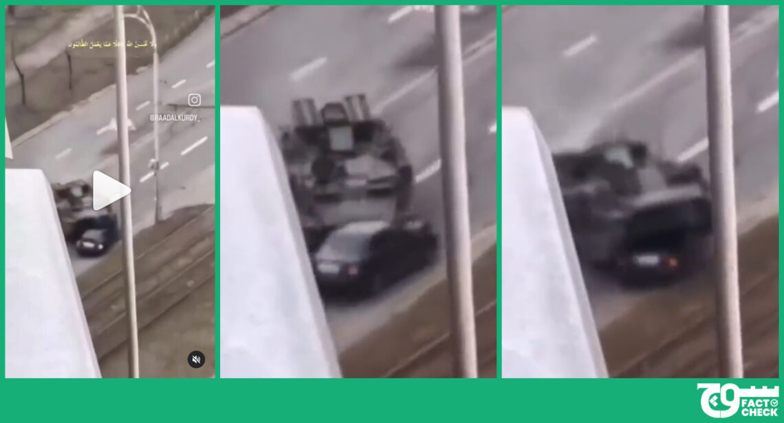 On 24 December 2023, the Instagram account @kashaf_ul_khair20 posted a video (archive) showing a tanker, allegedly belonging to the Israel Defense Forces (IDF), purposely running over a car coming from the other direction.