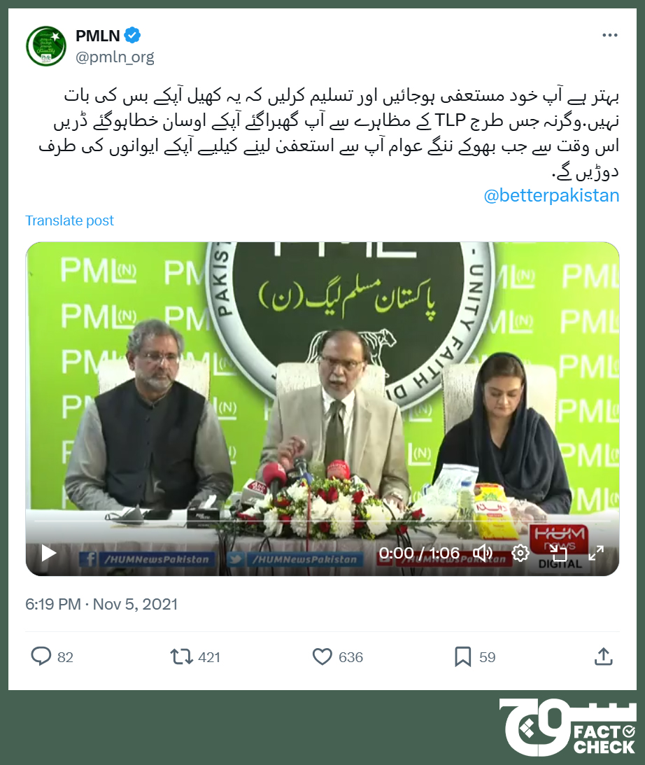 Claim: Planning Minister Ahsan Iqbal has urged Pakistan’s army chief, Field Marshal Syed Asim Munir, to resign over his failure to be a good leader, especially after his inability to handle the October 2025 protests by the Tehreek-e-Labbaik Pakistan (TLP).