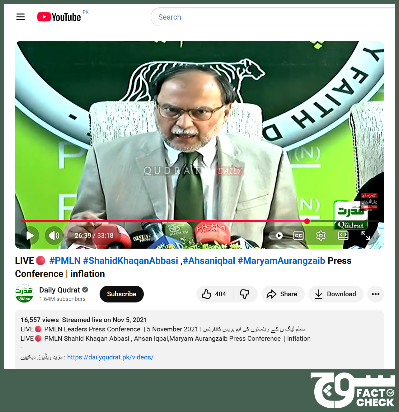 On 5 November 2021, the PML-N’s official X (formerly Twitter) account had posted (archive) the same video with the following caption and tagged Iqbal: