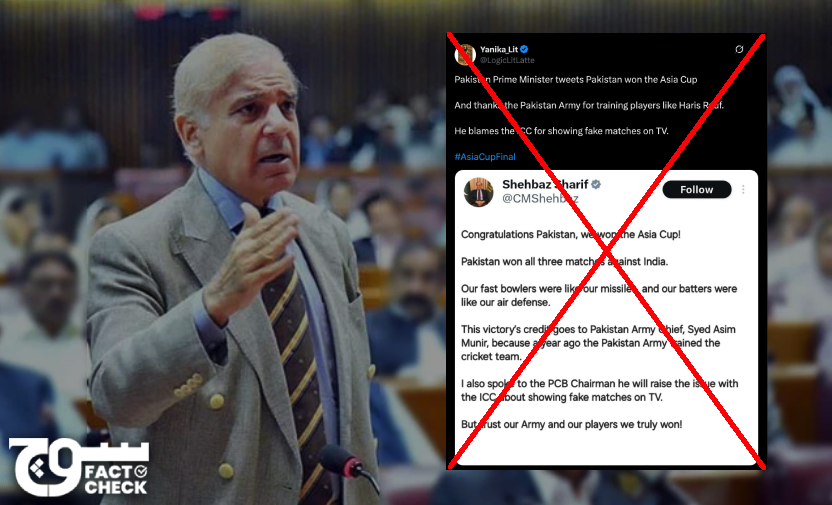 Claim: Prime Minister Shehbaz Sharif posted on X congratulating the Pakistan cricket team for winning all three matches against India in the Asia Cup 2025, and crediting the army chief for the team’s victory. Fact: The image is doctored. The prime minister did not publish any such post on X. On 28 September, a user […]
