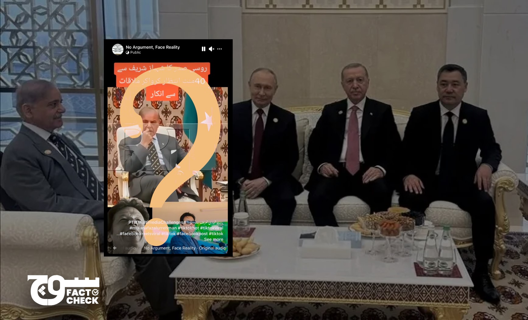 Claim: Prime Minister Shehbaz Sharif waited 40 minutes for Vladimir Putin before “growing tired and gate-crashing” the Russian president’s meeting with Recep Tayyip Erdoğan. Fact: The video that fuelled this claim was originally shared by RT India but was later deleted. The outlet issued a clarification saying “the post may have been a misrepresentation of […]