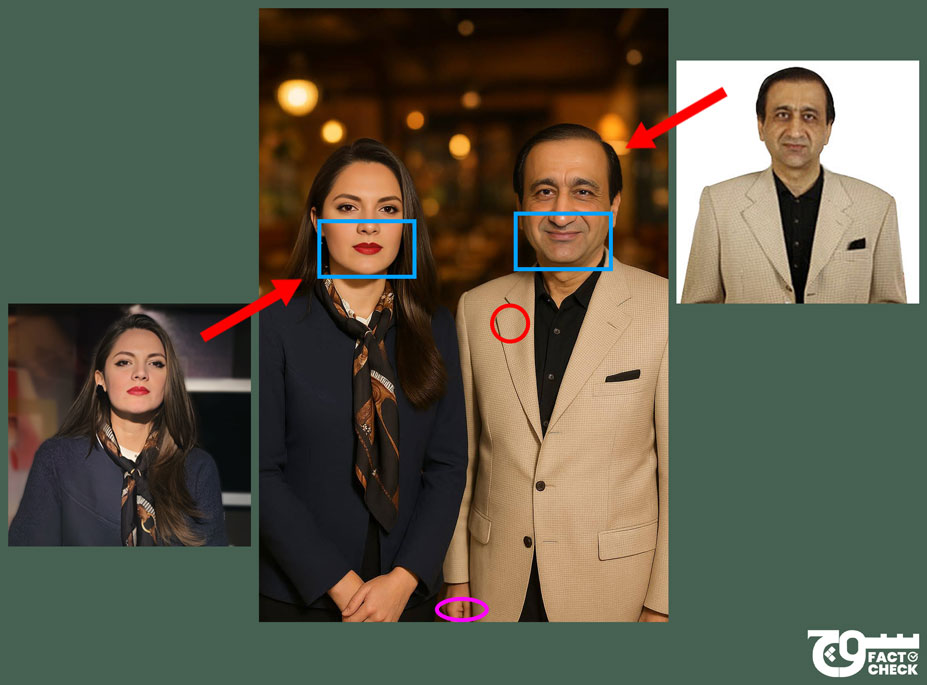 The third photo, shot selfie-style, is actually a screenshot from a video posted on Facebook and Instagram by TV anchor Rafia Awan on 9 August 2025. It shows her and former Turkish Consul General Cemal Sangu.
