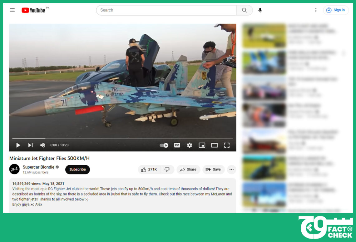 We found out that the video, in fact, shows a scaled-down, radio-controlled (RC) version of a real fighter jet. It is not a real fighter jet. A similar model can be seen in this clip on the YouTube channel Supercar Blondie titled “Miniature Jet Fighter Flies 500KM/H”.