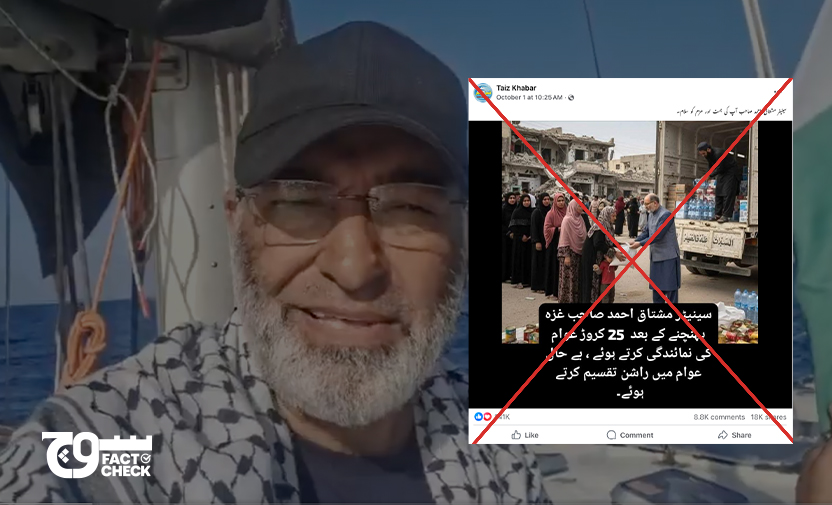 On 3 October, Deputy Prime Minister and Foreign Minister Ishaq Dar confirmed that the former senator had been detained by Israel. On 6 October, the Foreign Office announced that it is working to secure his safe evacuation. These developments confirmed that the Flotilla was seized by Israeli forces before it could reach Gaza. Therefore, the image claiming to show Mushtaq Ahmad distributing aid is fake.