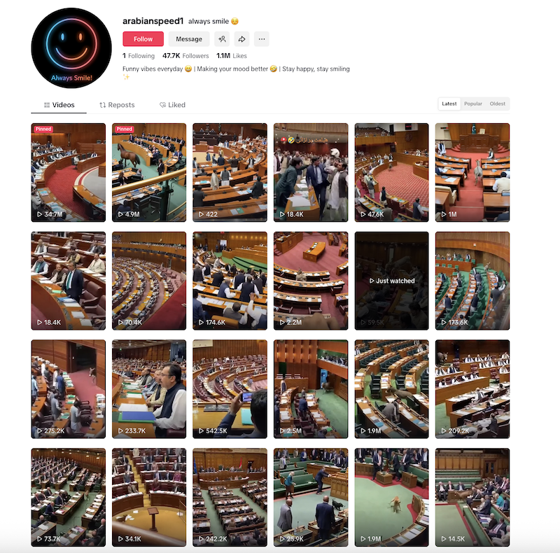 Account of the TikTok user who has uploaded several AI-generated videos of a donkey disrupting parliamentary sessions.