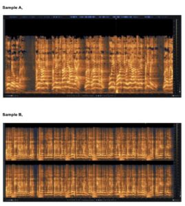 Based on these observations, Sample A was likely synthetically altered or manipulated whereas Sample B represents the authentic original recording.