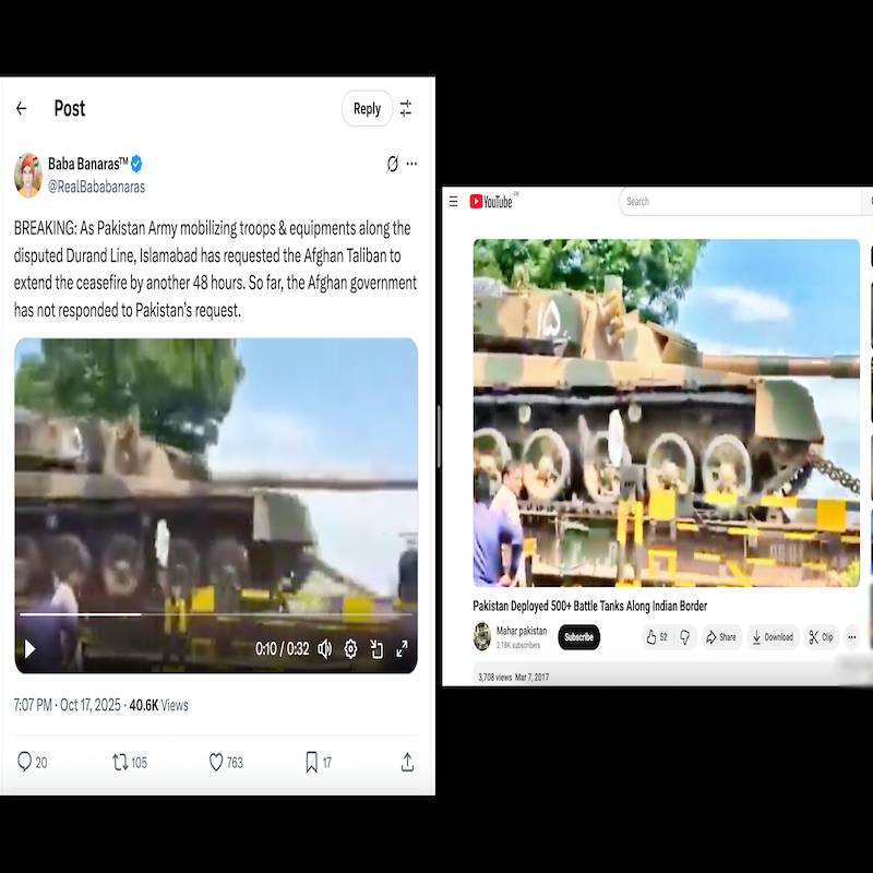 Back then, AFP Fact Check published an article (archive) titled “No, this is not ‘breaking’ footage of Pakistani tanks being transported to the border with India”. It debunked the same footage when it circulated online and claimed to show a train carrying Pakistani equipment to the Indian border in February 2019. AFP found an old extended version of the same clip on YouTube from March 2017 to debunk the claim, and it matched the footage circulating online at the time. “Pakistan Deployed 500+ Battle Tanks Along Indian Border”, reads the description of the YouTube video.