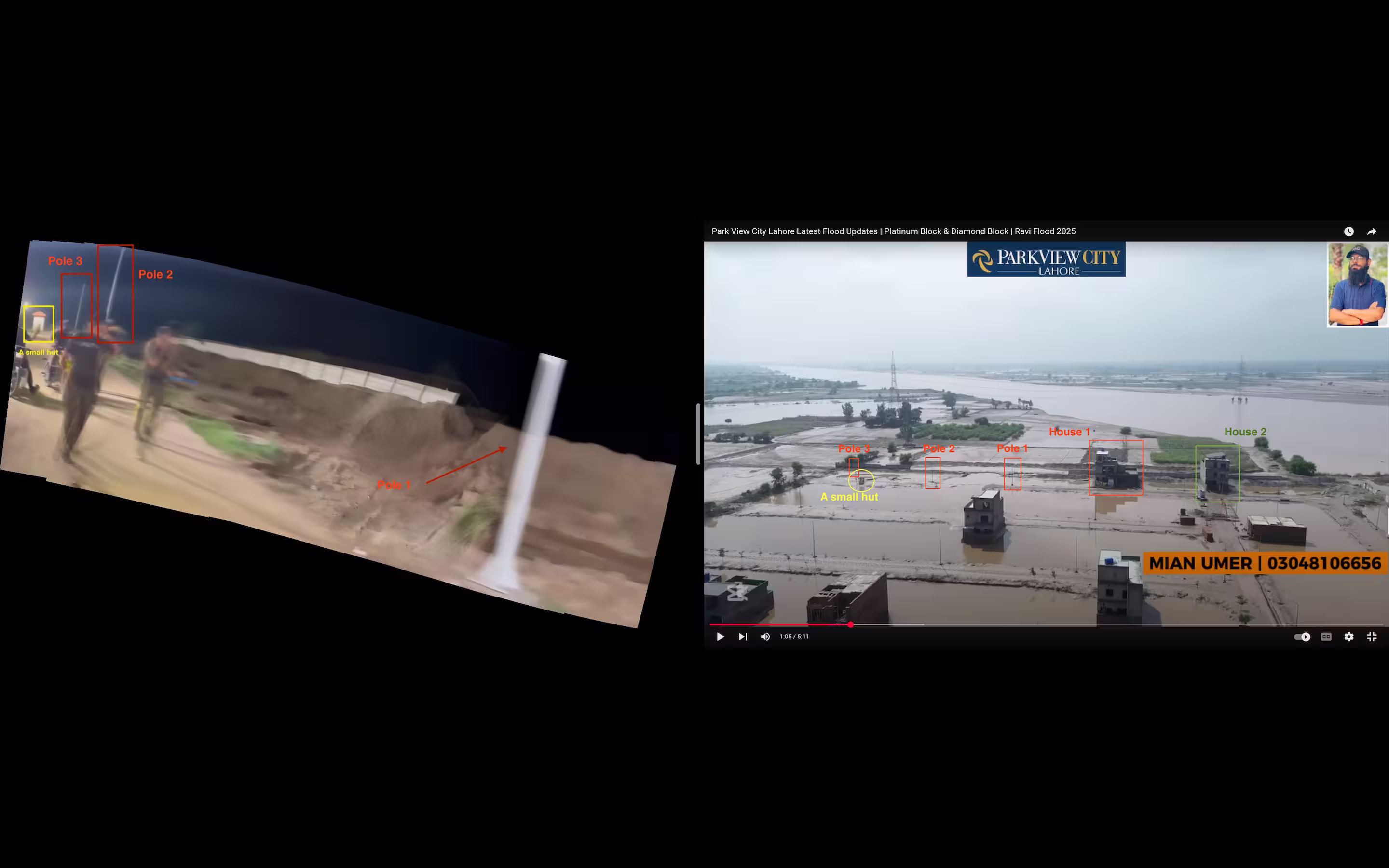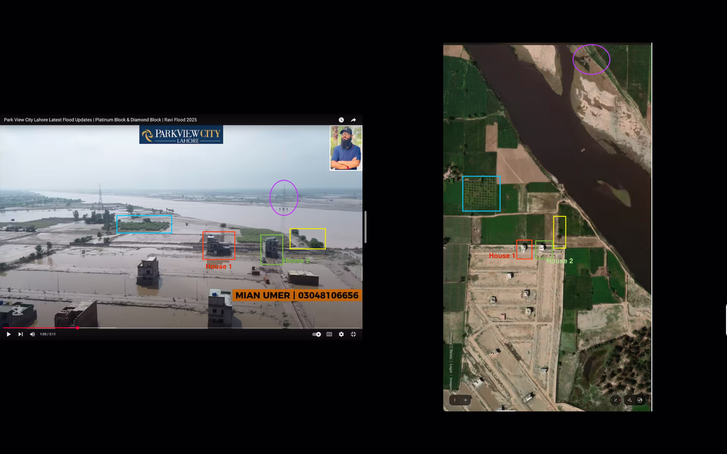 These methods allowed us to pinpoint one of the exact locations where the floodwater from Ravi breached the protective barriers installed by the management to protect Khan’s housing society from flooding.