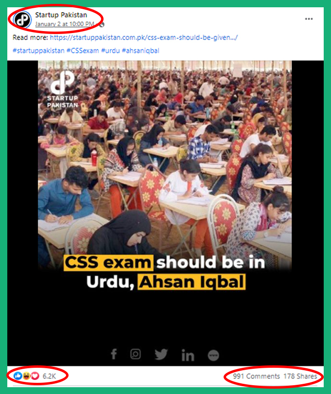 A CrowdTangle analysis revealed that multiple Facebook pages and groups in Pakistan including Parhlo, Youth of Pakistan Foundation, and People Magazine Pakistan picked up the story following Startup Pakistan’s post.