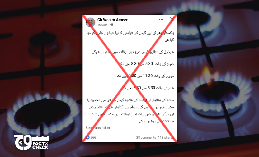 Fact: No such schedule has been issued. One of the country’s two gas distributors, the SSGC, has published a rebuttal, terming the posts “entirely false”. The other, SNGPL, has not announced any new schedule.