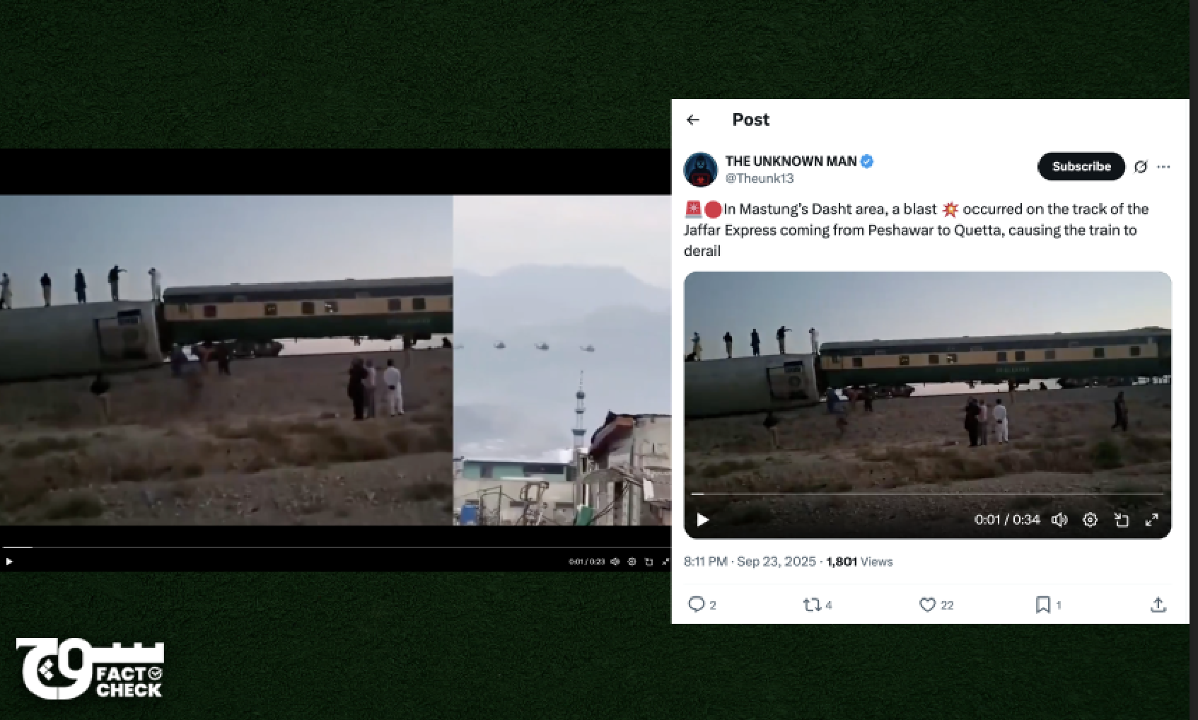 Fact: The video shows a Jaffar Express targeted in September 2025 when a bomb blast derailed the train in the Mastung district of Balochistan.