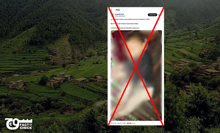 On 22 September, an X user posted a photo (archive) purportedly showing a child killed in the recent bombing that was reportedly carried out by Pakistani jets. “Pakistan Air Force has killed innocent civilians in KPK. More than 20 civilians have been killed. A silent Genocide by Pakistan continues,” reads the caption of the post.