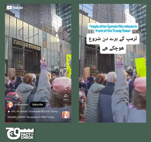 On 7 February, a video showing massive protests has been shared online. It contains the following text: “People after Epstein file release in front of the Trump Tower