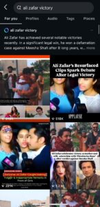“The case between #AliZafar and #MeeshaShafi, which had been ongoing for eight years, was decided in favor of Ali Zafar. The court has also imposed a fine of 5 million rupees on Meesha Shafi as a penalty. The verdict is currently making headlines, with many people questioning the decision, while Ali Zafar, along with his mother and wife, is celebrating the victory.”