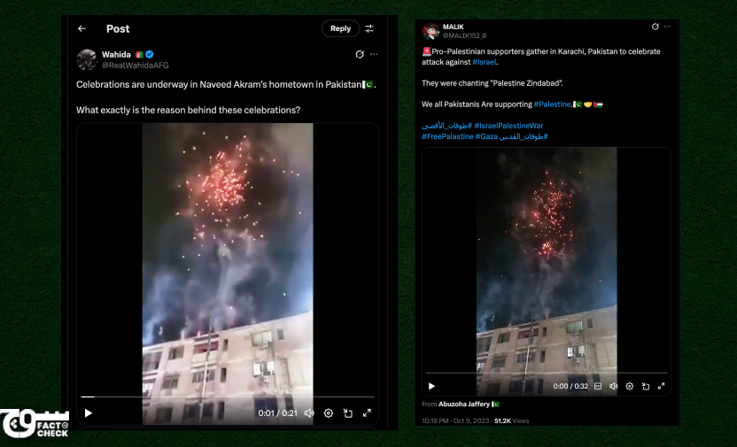 An X user posted the same video (archive) on 9 October 2023, with the following description: “Pro-Palestinian supporters gather in Karachi, Pakistan to celebrate attack against #Israel.
