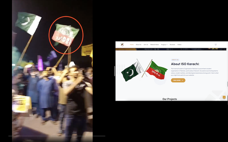 The description above indicated that the Imamia Students Organization Pakistan (ISO), a Karachi-based student right-wing Shia student group, had organised the gathering. The flags held by the crowd in the video also match the ISO flag, available on its website and shown below:
