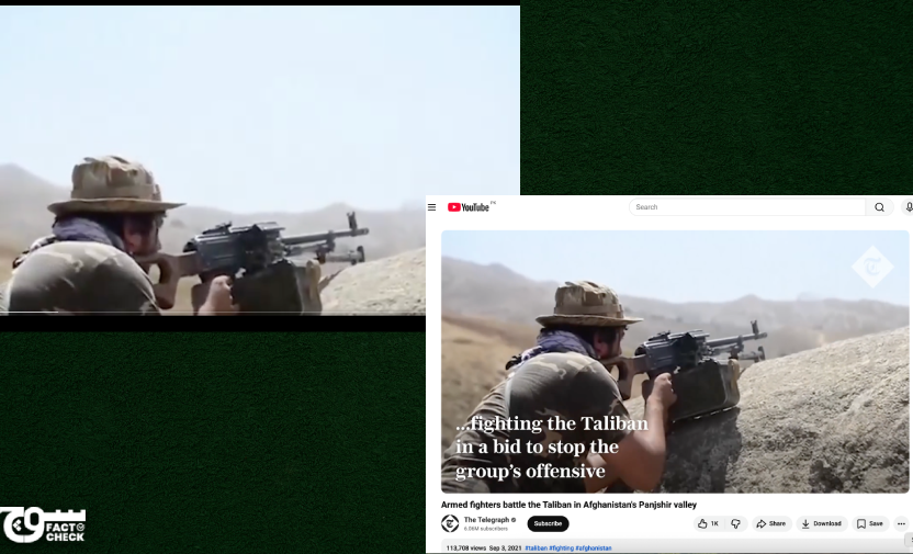 The Telegraph posted a video, titled “Armed fighters battle the Taliban in Afghanistan’s Panjshir valley”, on YouTube on 3 September 2021. The scenes from this match the video being fact-checked.