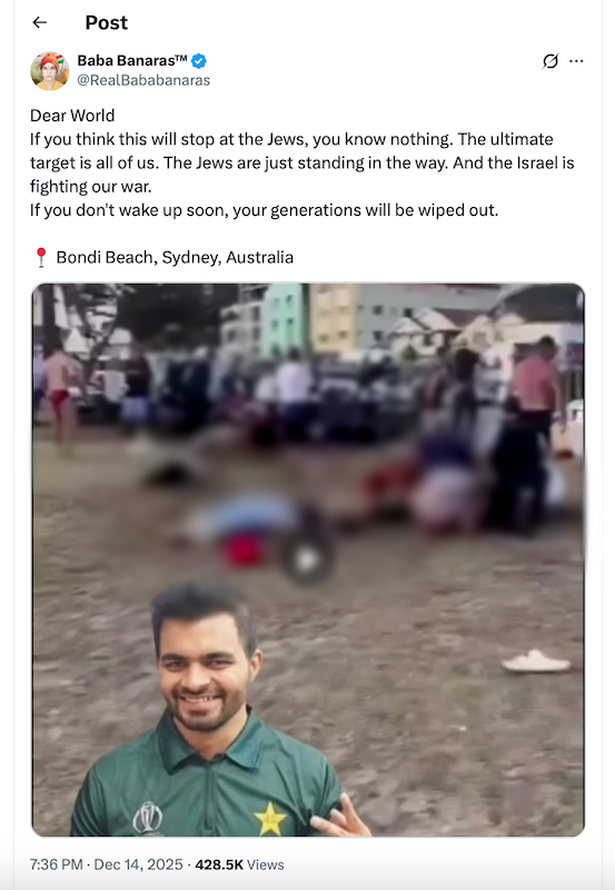 On 14 December, Indian and Afghan accounts claimed that an image shows Naveed Akram, one of the suspects in the shooting at Bondi Beach in Sydney, Australia.
