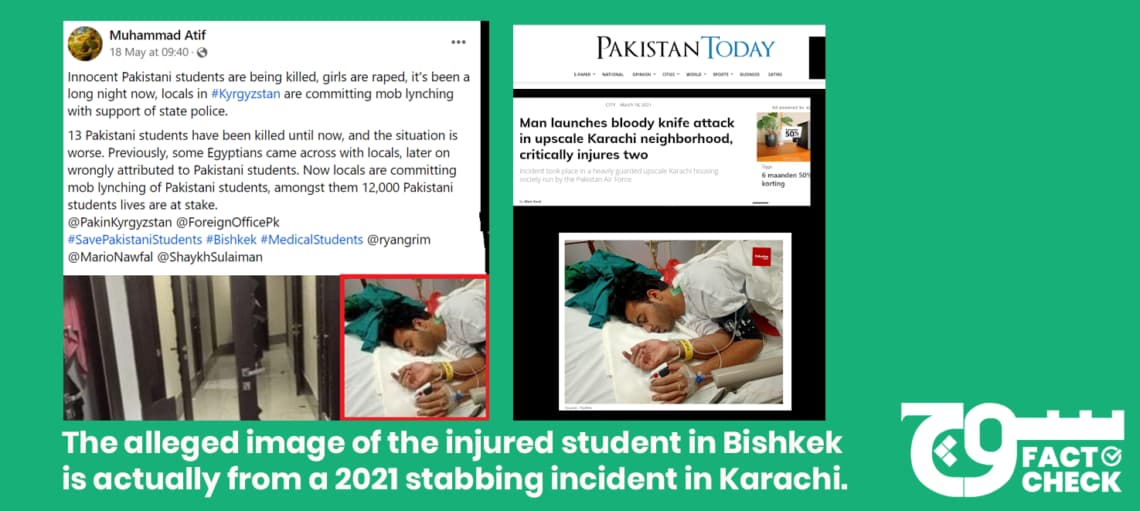 The alleged image of the injured student in Bishkek is actually from a 2021 stabbing incident in Karachi, Pakistan.
