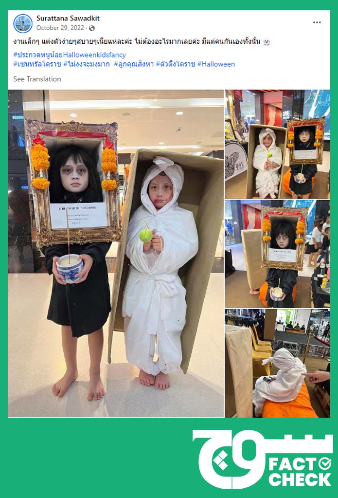 Further searching led Soch Fact Check to a Facebook post from 29 October 2022 by a Thailand-based news outlet, Morning News which had shared the image along with three other images of children dressed up as ghosts.