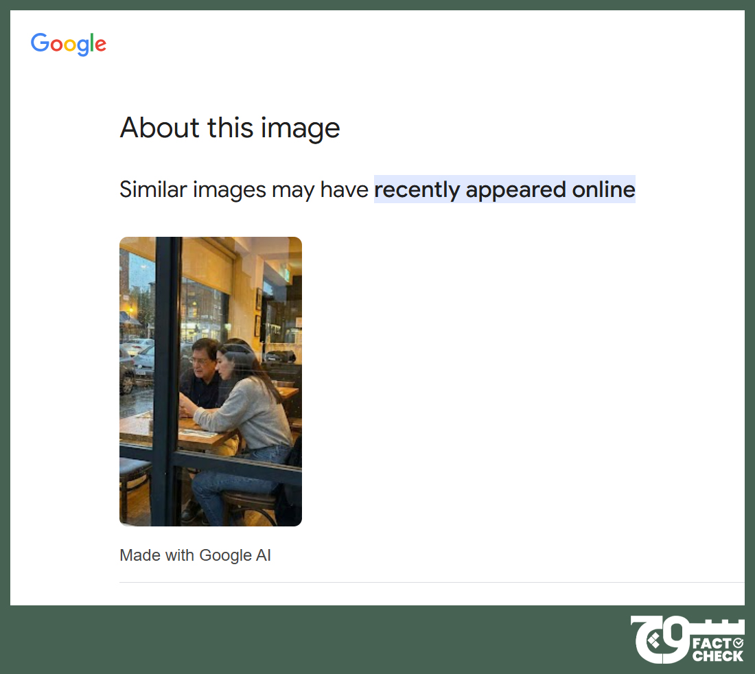 Given the inconclusive, diverse results, we decided to verify the picture’s origin by running it through Google Reverse Image Search and checking the “About this image” tab. The results confirmed that it was created using Google AI, citing the detection of a SynthID watermark.