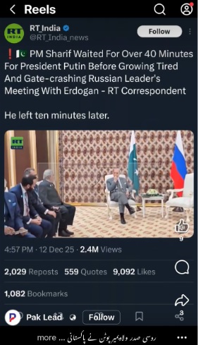 “❗️🇵🇰 PM Sharif Waited For Over 40 Minutes For President Putin Before Growing Tired And Gate-crashing Russian Leader’s Meeting With Erdogan – RT Correspondent.