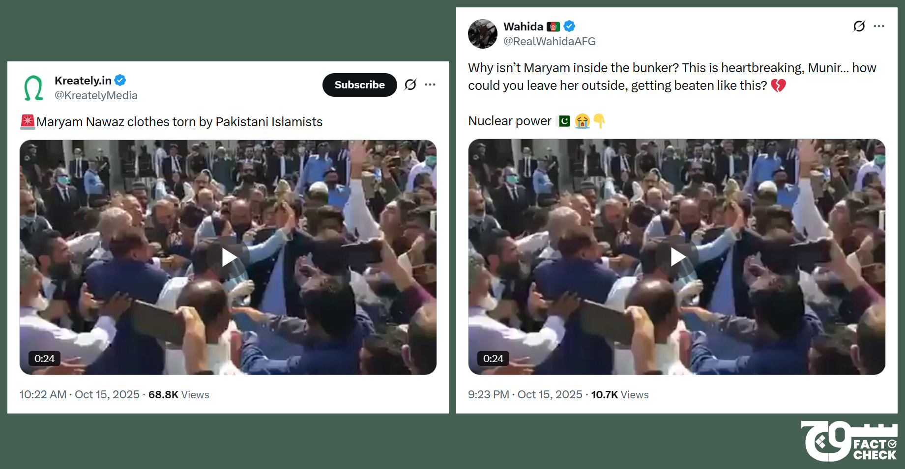 On 15 October 2025, some users posted a video claiming it showed Punjab Chief Minister Maryam Nawaz being “beaten” by a mob of “Pakistani Islamists”, who also tore her clothes (archived here and here, respectively).