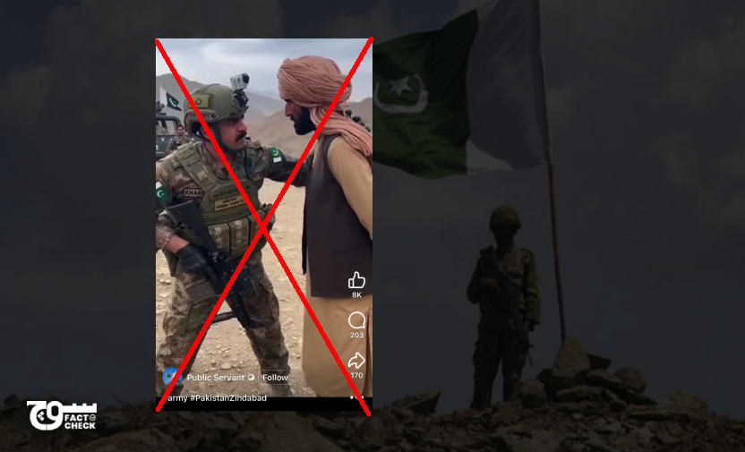 Claim: A video shows Pakistan Army soldiers forcibly dragging a woman. Fact: The video is AI-generated. A video shared on X (archive) purported to show Pakistan Army soldiers forcibly removing a woman. The post included a claim in Pashto, with an English translation visible in the screenshot below: Fact or Fiction? Soch Fact Check’s analysis […]