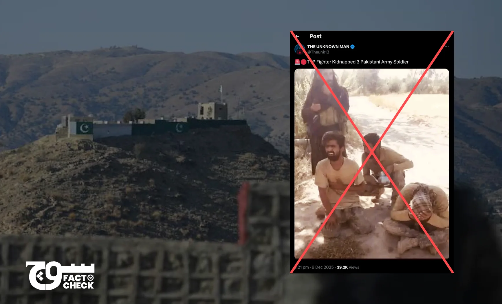 Claim: An image shows three Pakistan Army soldiers recently kidnapped by Tehreek-e-Taliban Pakistan (TTP). Fact: The image was shared on social media as early as 2020. On 9 December, an X user shared an image showing three men squatting on the ground, wearing similar clothes, along with a man standing behind them in black clothes. […]