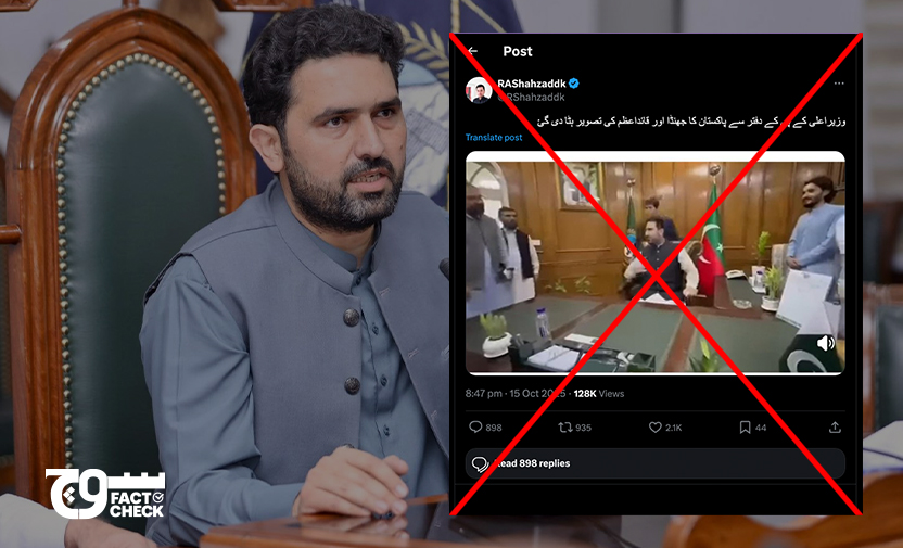 Claim: The newly-elected Chief Minister of Khyber Pakhtunkhwa Sohail Afridi has removed the Quaid-e-Azam’s portrait and the national flag from his office. Fact: The claim is false. The image accompanying the viral claim is a zoomed-in frame that does not show Jinnah’s portrait and the Pakistani flag. However, a review of the available footage revealed […]