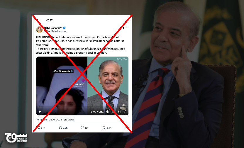 Claim: A clip shows Prime Minister Shehbaz Sharif being intimate with a woman. Fact: This claim is false as the video originally depicts an unknown individual, not Shehbaz Sharif. On 6 October, an Indian user on X, whose posts have been previously debunked by Soch Fact Check, shared an alleged video (archive) of Prime Minister […]