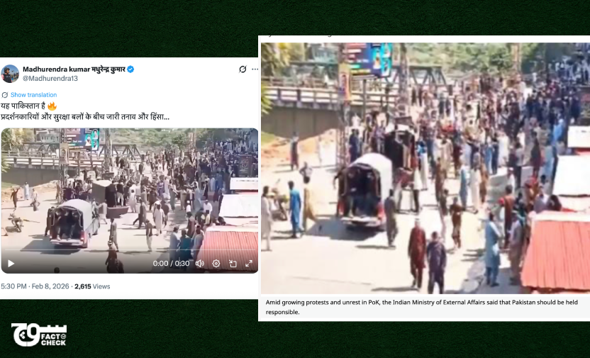 Reverse searches also yielded articles from October 2025 by Indian news outlets that linked the incident to “Pakistan-occupied Kashmir”. Lokmat News’ article from 3 October 2025 carries a cover photo that matches a keyframe from the video being fact-checked. It is titled [translated via Google Translate into English]: “Amid growing protests and unrest in PoK, the Indian Ministry of External Affairs said that Pakistan should be held responsible.”