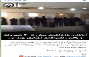 A screenshot from a Telegram post by HRANA showing detainees in Abadan, Iran, following protests. The footage was later misrepresented online as showing arrested Indian nationals.