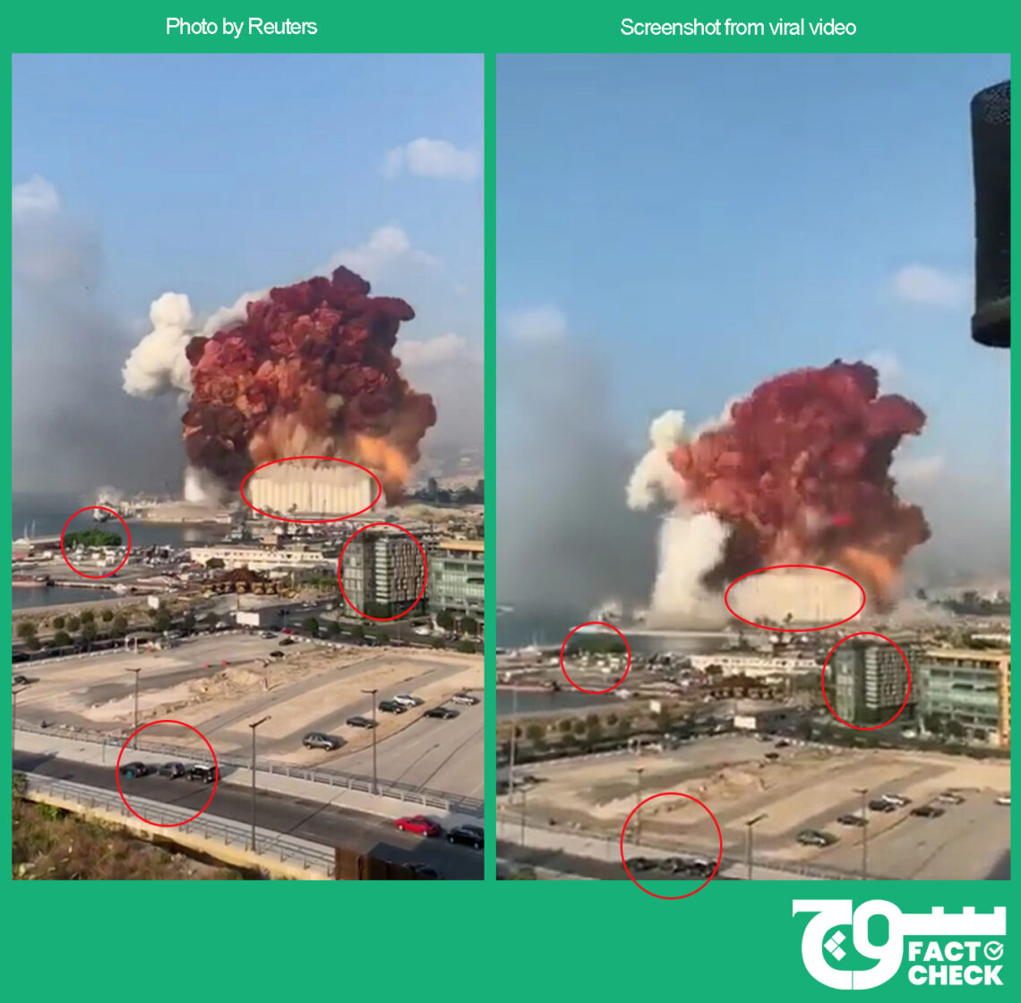Soch Fact Check ascertained that the news agency Reuters carried photos of the deadly blast, which looks similar to keyframes of the viral video as can be seen in the graphic below.