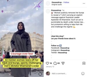 Multiple Instagram accounts reposted the clip framing it as an act of defiance in Tehran. Some of these posts can be viewed here, here, here and here.