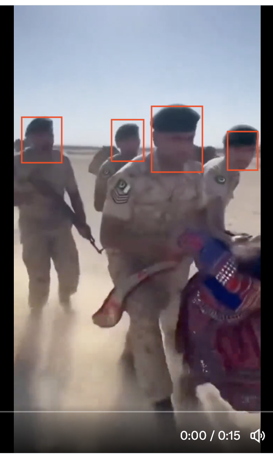 The soldiers’ faces in this screengrab are blurred and distorted.