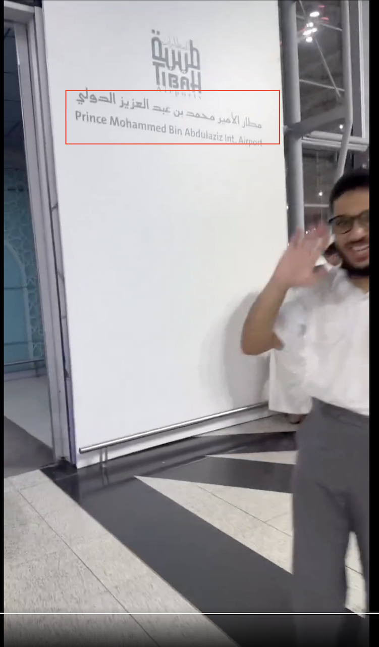 This video was captured at Prince Mohammad Bin Abdulaziz International Airport in Medina, Saudi Arabia, as evidenced by the name of the airport inscribed on the walls [see screenshot from the video below]. However, the fact that it appeared as early as May 2025 confirms that it is not linked to the recent signing of the defence agreement.