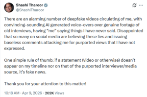 Tharoor also took to his X account where he called out the “alarming number of deepfake videos” of him.