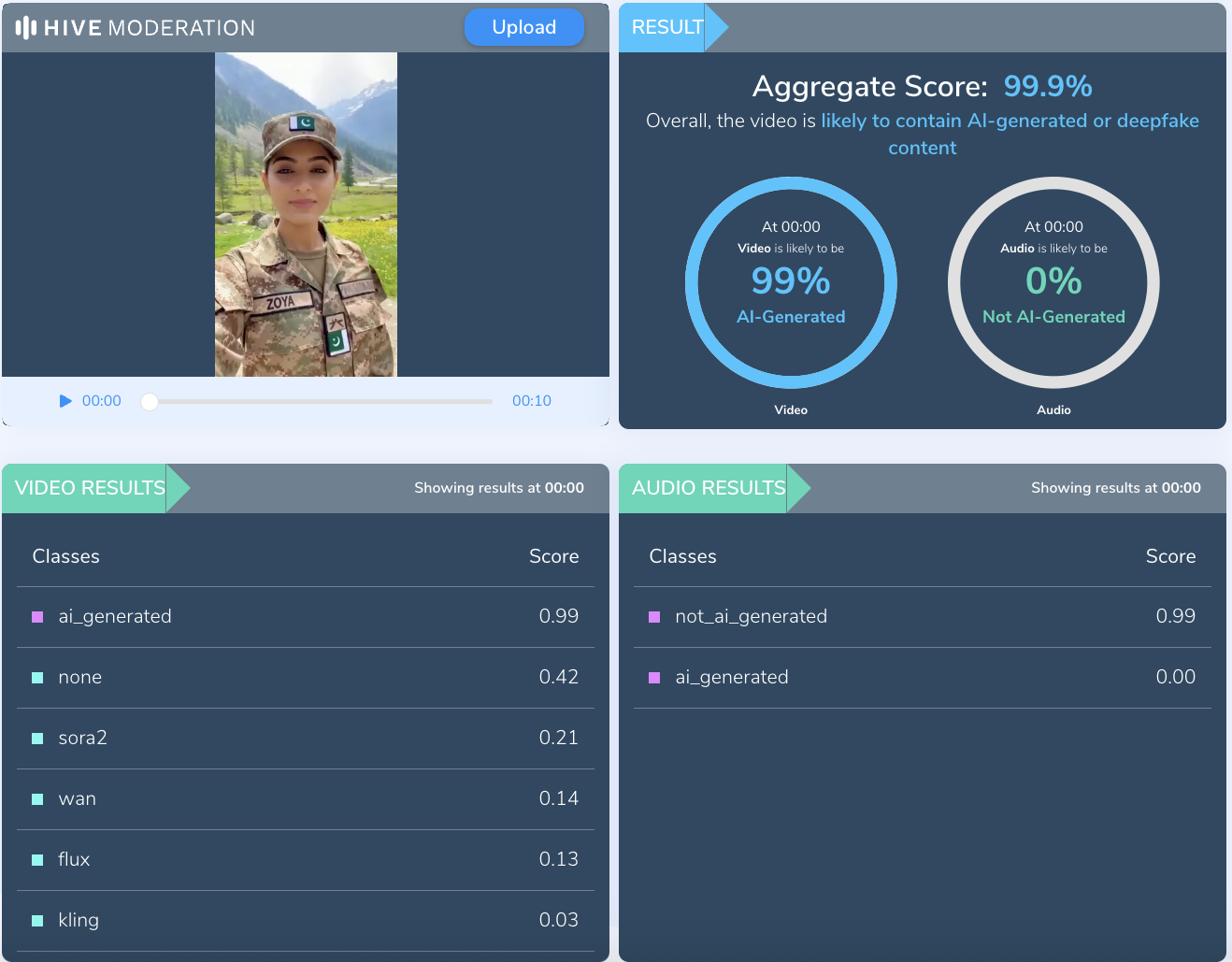 Results from Hive Moderation.