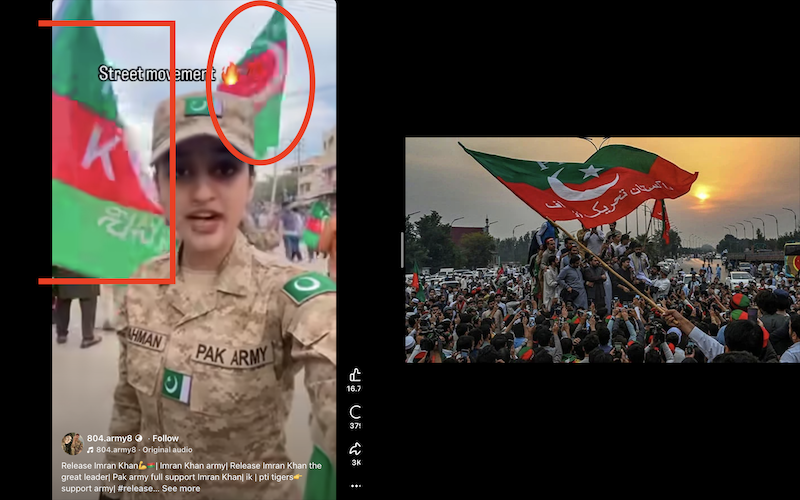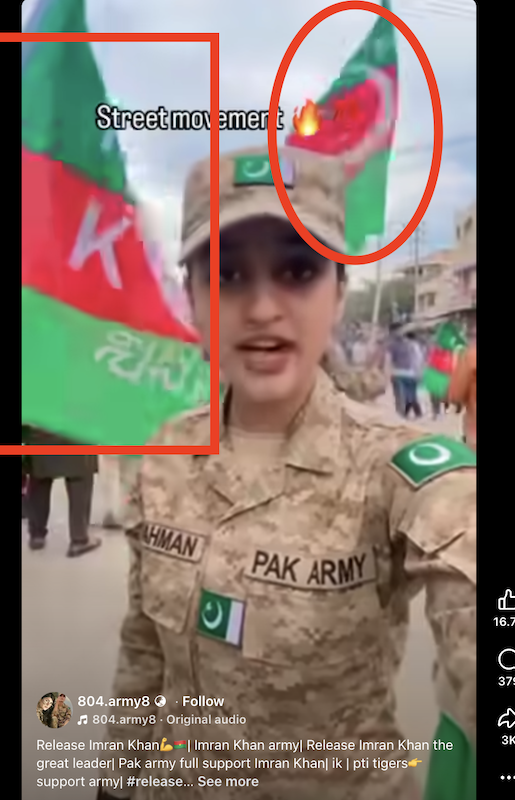 A second similar clip shows a female soldier on the street at an apparent PTI gathering.