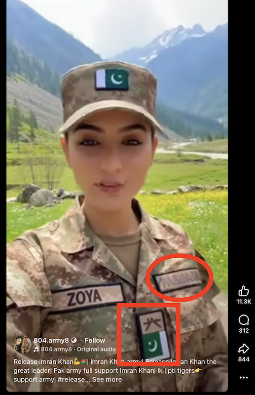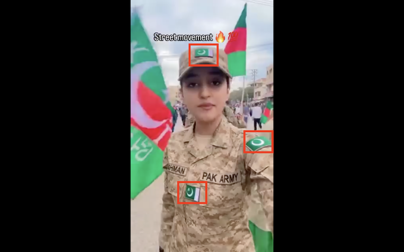 We noted several signs that are typical of AI-generated content. The Pakistani flag pinned on the soldier’s uniform and cap are portrayed inaccurately. They appear to be a flipped version of the original (indicated in the image below).