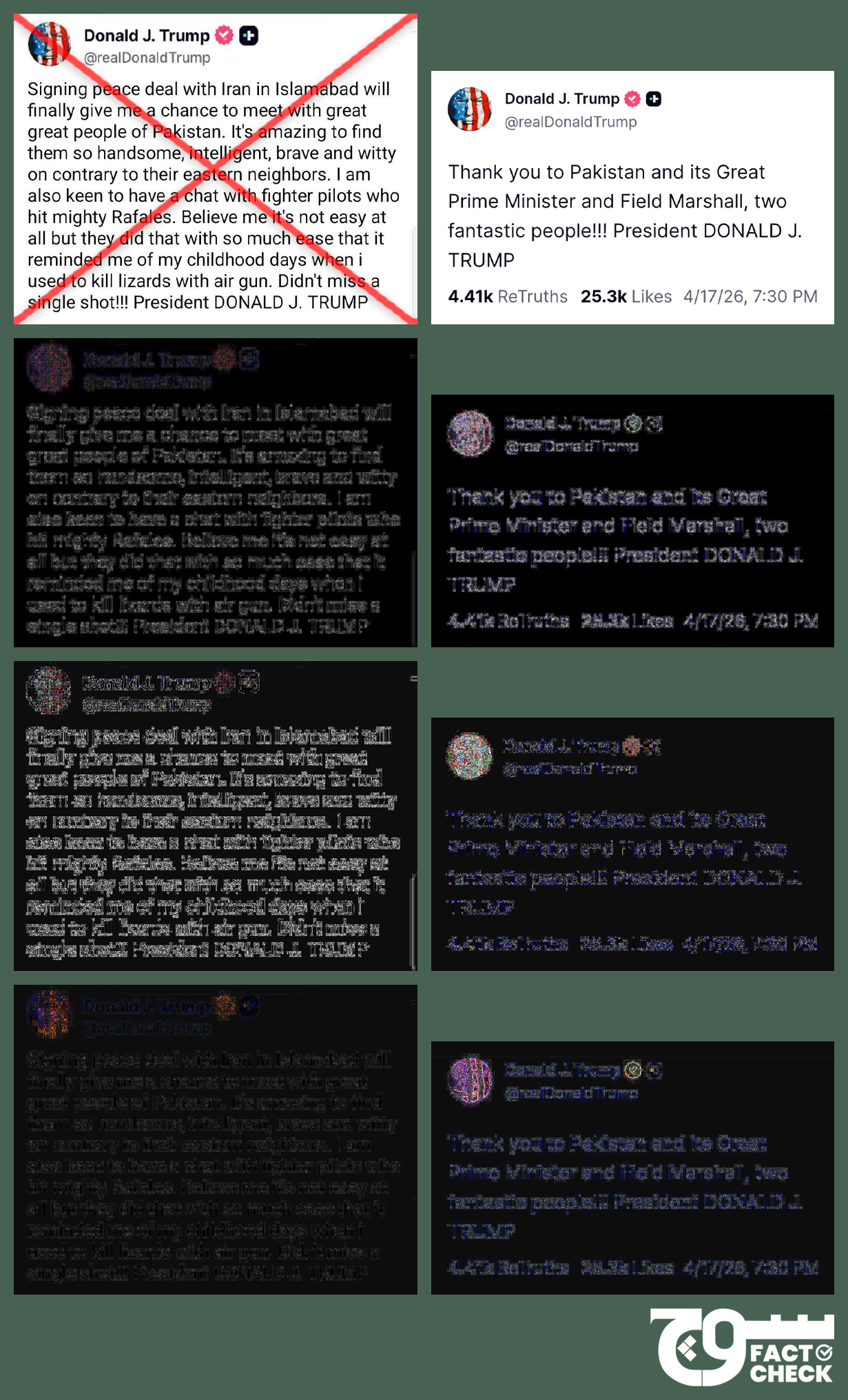 To strengthen the findings, we also compared the results with those of an authentic 17 April 2026 post on Trump’s Truth Social account, wherein he wrote, “Thank you to Pakistan and its Great Prime Minister and Field Marshall, two fantastic people!!!”