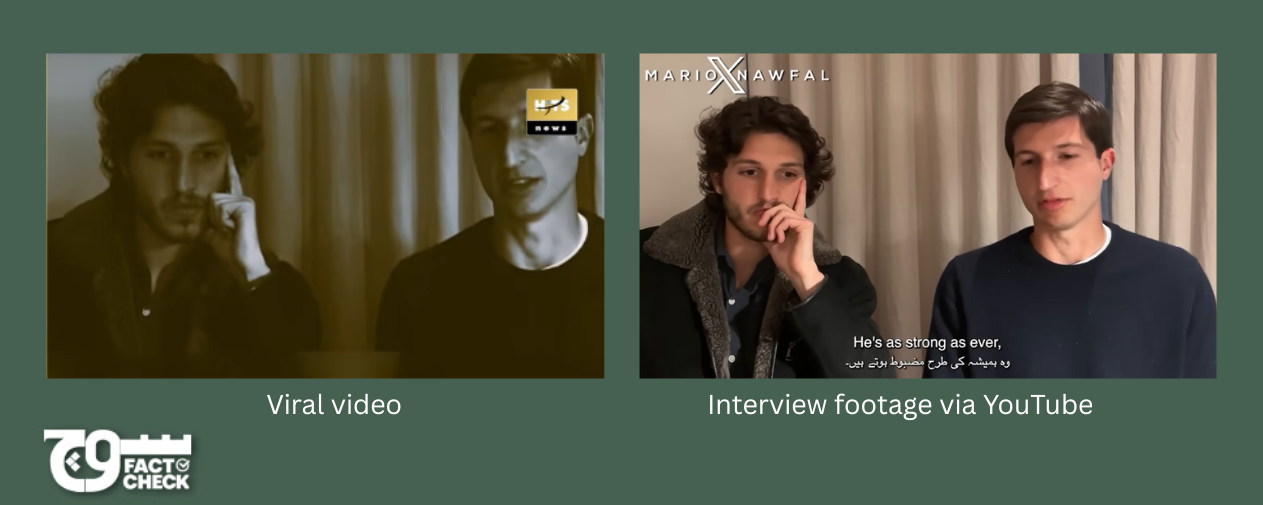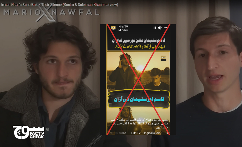Soch Fact Check first reverse-searched keyframes of the video and traced them to an interview of Khan’s sons from May 2025. Speaking with Mario Nawfal, they discussed their father’s case and the condition of his prison cell, but did not rise to recite the call to prayer at any point.